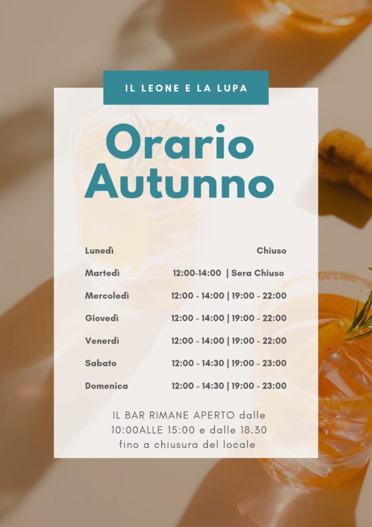Nuovo orario autunno/inverno 2025/26 ristorante “il Leone e la Lupa”.